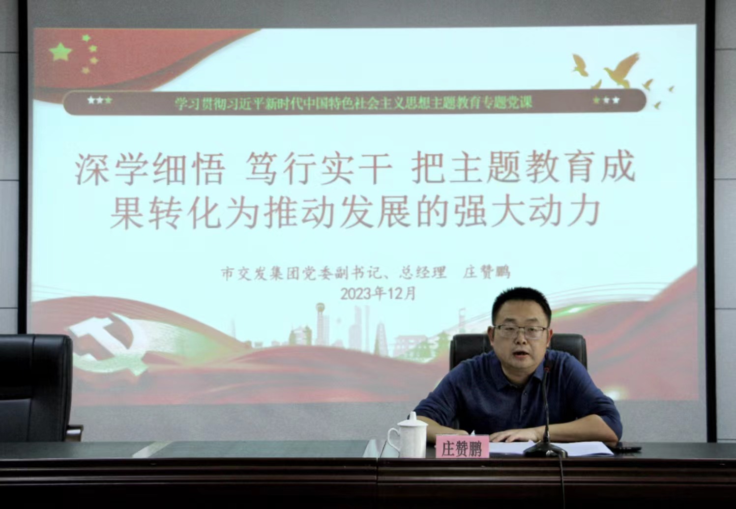 為扎實(shí)開展學(xué)習(xí)貫徹習(xí)近平新時代中國特色社會主義思想主題教育,推動學(xué)習(xí)成效和成果轉(zhuǎn)化在基層縱向延伸,12月14日,市交發(fā)集團(tuán)黨委副書記、總經(jīng)理莊贊鵬到市路橋集團(tuán)講授題為《深學(xué)細(xì)悟 篤行實(shí)干 把主題教育成果轉(zhuǎn)化為推動發(fā)展的強(qiáng)大動力》的專題黨課。