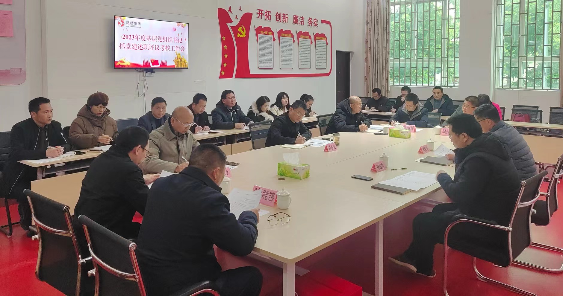 為深入貫徹落實習近平新時代中國特色社會主義思想,學習貫徹黨的二十大精神和二十屆二中全會精神,深刻檢驗主題教育成果,確保集團基層黨組織書記堅定擁護“兩個確立”、堅決做到“兩個維護”,推動基層黨支部在促進企業(yè)高質量發(fā)展過程中發(fā)揮強大戰(zhàn)斗堡壘作用,3月1日,市路橋集團召開2023年度基層黨組織書記抓黨建述職評議考核工作會議,黨委書記、董事長周家興主持會議。