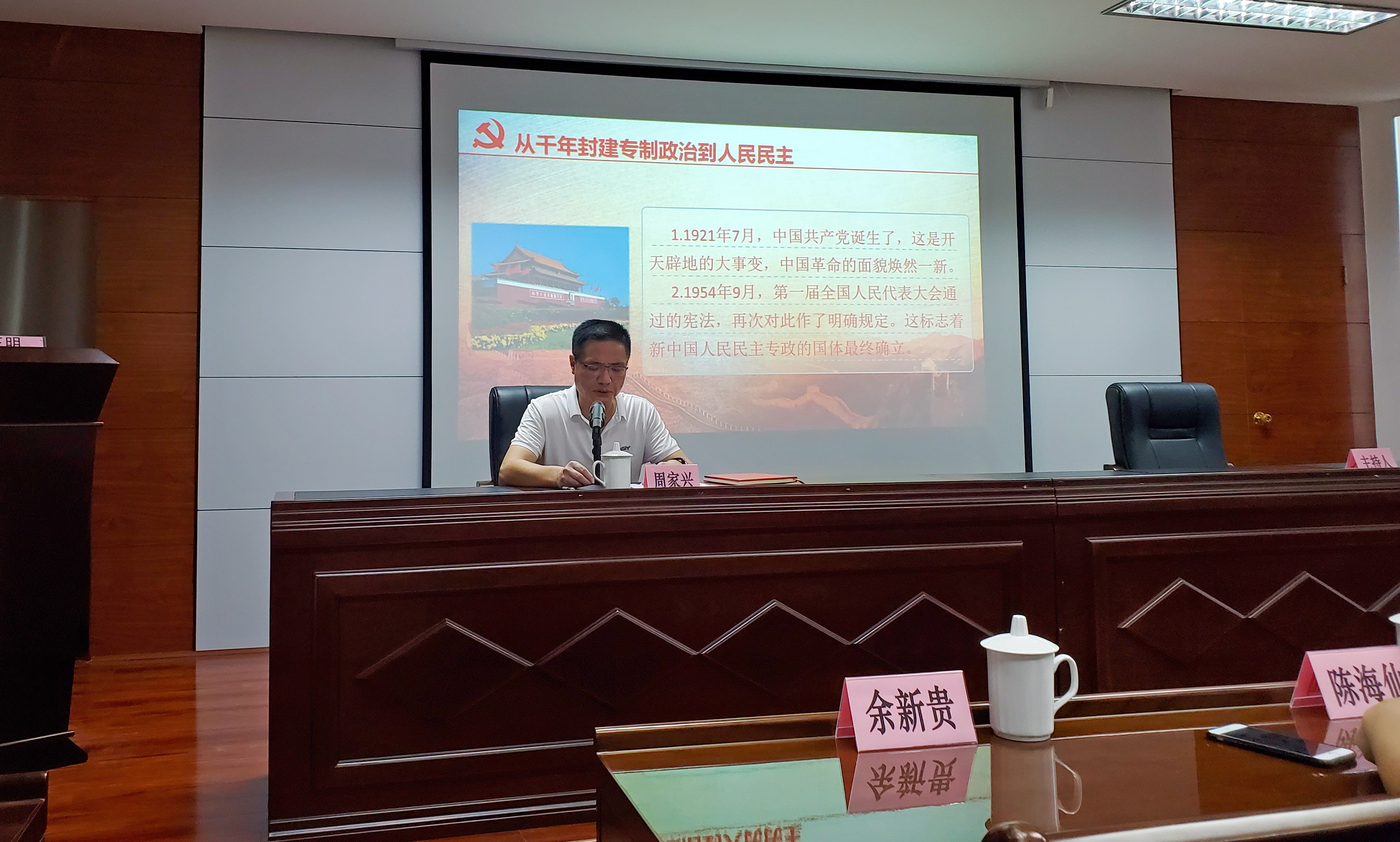 課上,周家興緊扣全會(huì)主題,圍繞“中國(guó)建立人民民主專政制度”、“中華民族由不斷衰落持續(xù)走向繁榮富強(qiáng)”、“中國(guó)人民實(shí)現(xiàn)從站起來(lái)、富起來(lái)到強(qiáng)起來(lái)的偉大目標(biāo)”三個(gè)方面,生動(dòng)介紹了黨的百年光輝歷程。