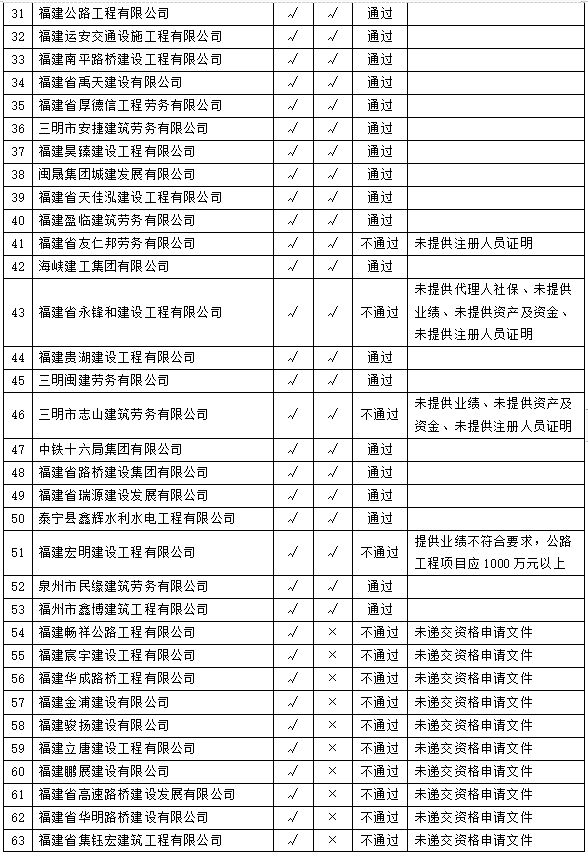我司已對公路工程勞務隊伍信息庫進行了評審,現(xiàn)將評審結果進行公示,公示時間為2022年6月28日至6月30日。申請人若對資格評審結果有異議的,請在公示期內(nèi)以書面的形式向三明市路橋集團有限公司紀檢監(jiān)察部進行反饋。