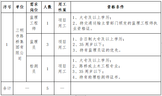 (一)公告。招聘崗位、人數(shù)、任職資格等信息在 “三明市路橋集團(tuán)”官網(wǎng)(m.jhweili.com)“一覽英才網(wǎng)”官網(wǎng)向社會統(tǒng)一公告。