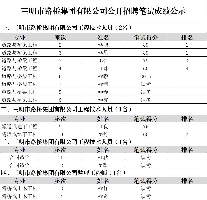 市路橋集團(tuán)公開(kāi)招聘筆試環(huán)節(jié)已于2022年7月20日完成,現(xiàn)將筆試成績(jī)予以公示: