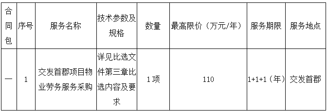 現(xiàn)對(duì)交發(fā)首郡項(xiàng)目物業(yè)勞務(wù)服務(wù)采購(gòu)的下述服務(wù)進(jìn)行比選,現(xiàn)歡迎符合條件的投標(biāo)人前來(lái)提交密封的投標(biāo)文件。