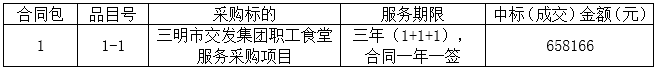 三明市交發(fā)集團(tuán)職工食堂服務(wù)采購項目招標(biāo)結(jié)果公告