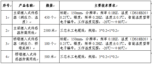(一)采購(gòu)內(nèi)容:大田廣平至安溪官橋高速公路三明段懸澆橋梁施工監(jiān)控量測(cè)埋入式傳感器及所需用線一批。